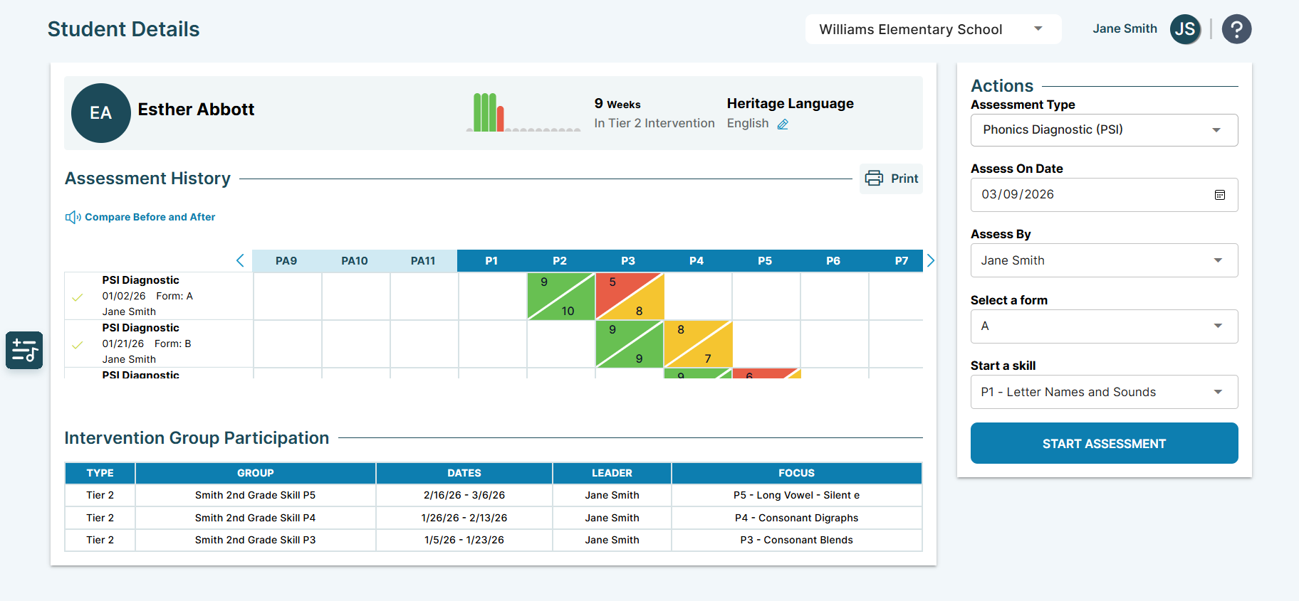 • Phonics Screener for Intervention (PSI) diagnostic assessment