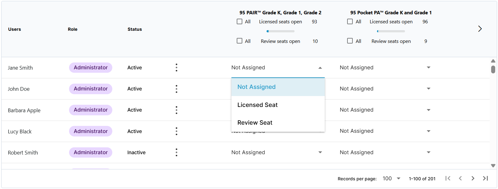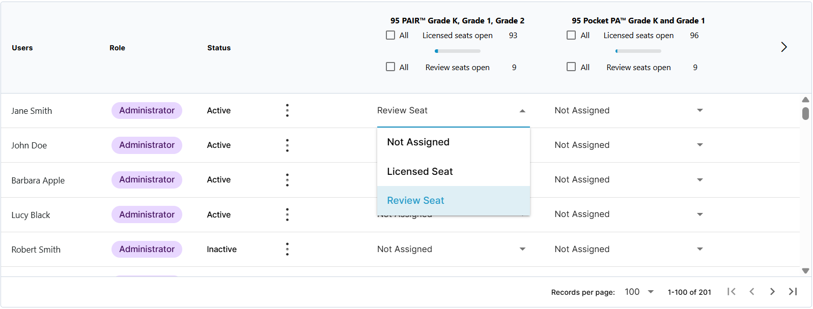 Remove review seats from substitutes by repeating this process and selecting Not Assigned from the drop-down once they no longer need access.