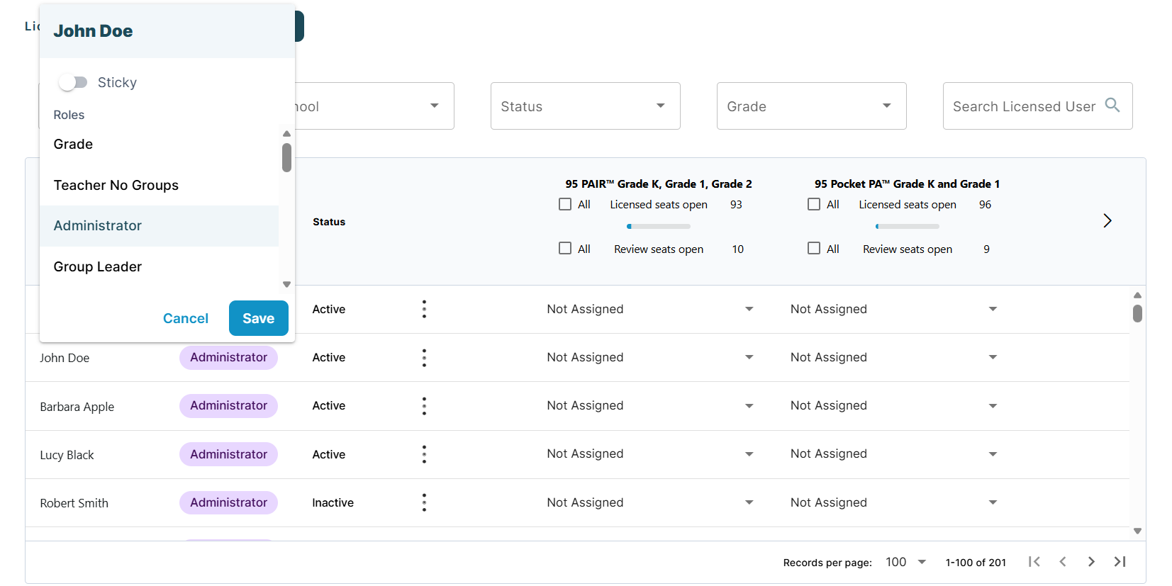 Districts with access to the 95 Literacy Intervention System™ (LIS) can select from various roles, including custom roles, depending on their configuration within the Settings page's Roles tab.