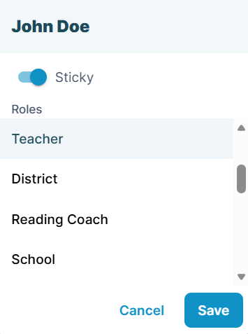The Sticky toggle overrides the default role mapping within the Settings page’s Connect tab. This means the user’s role will remain anytime a manual or nightly re-roster occurs. If the toggle is disabled, they will only have their role privileges until the next re-roster.