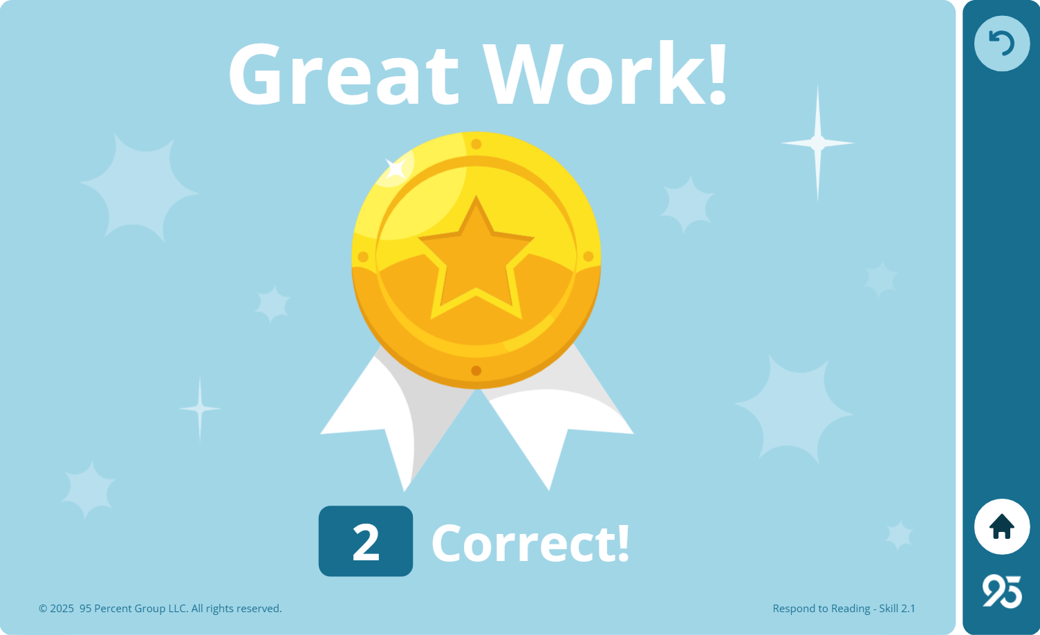 To ensure that students’ activity completion is captured, the home icon at the bottom of each SAM’s menu should only be selected once practice time is over. Students' progress is not saved if activities are closed before the completion criteria are met.