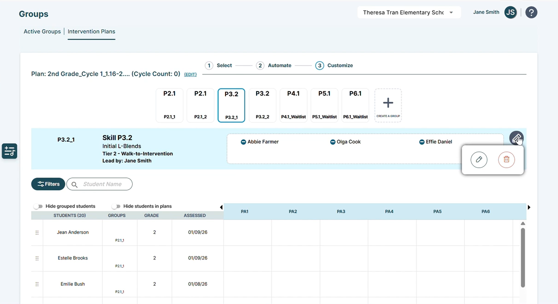 Whether your institution groups students by grade level, combines multiple grades, or organizes intervention plans by instructors or time slots, it's important that those responsible for grouping students follow a consistent naming convention. This helps leadership easily identify groups when analyzing student data and progress.