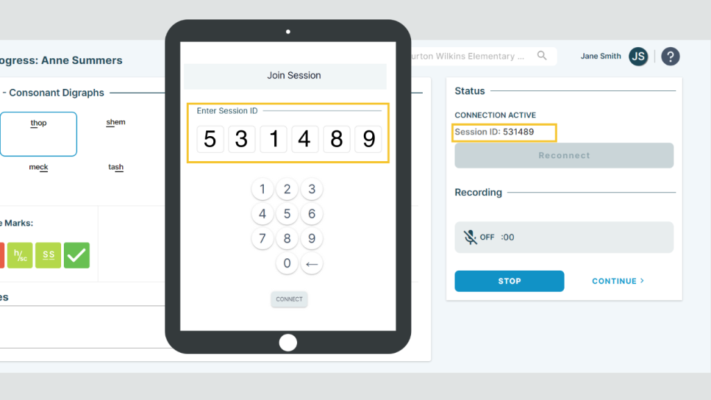 • Connect the devices Enter the session ID from your teacher device into the student device.
