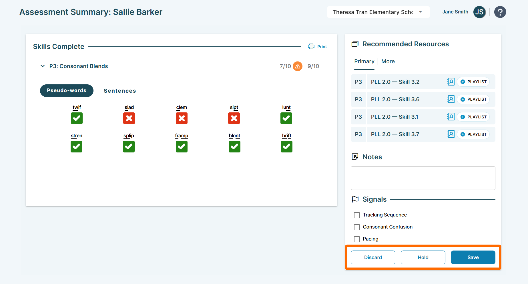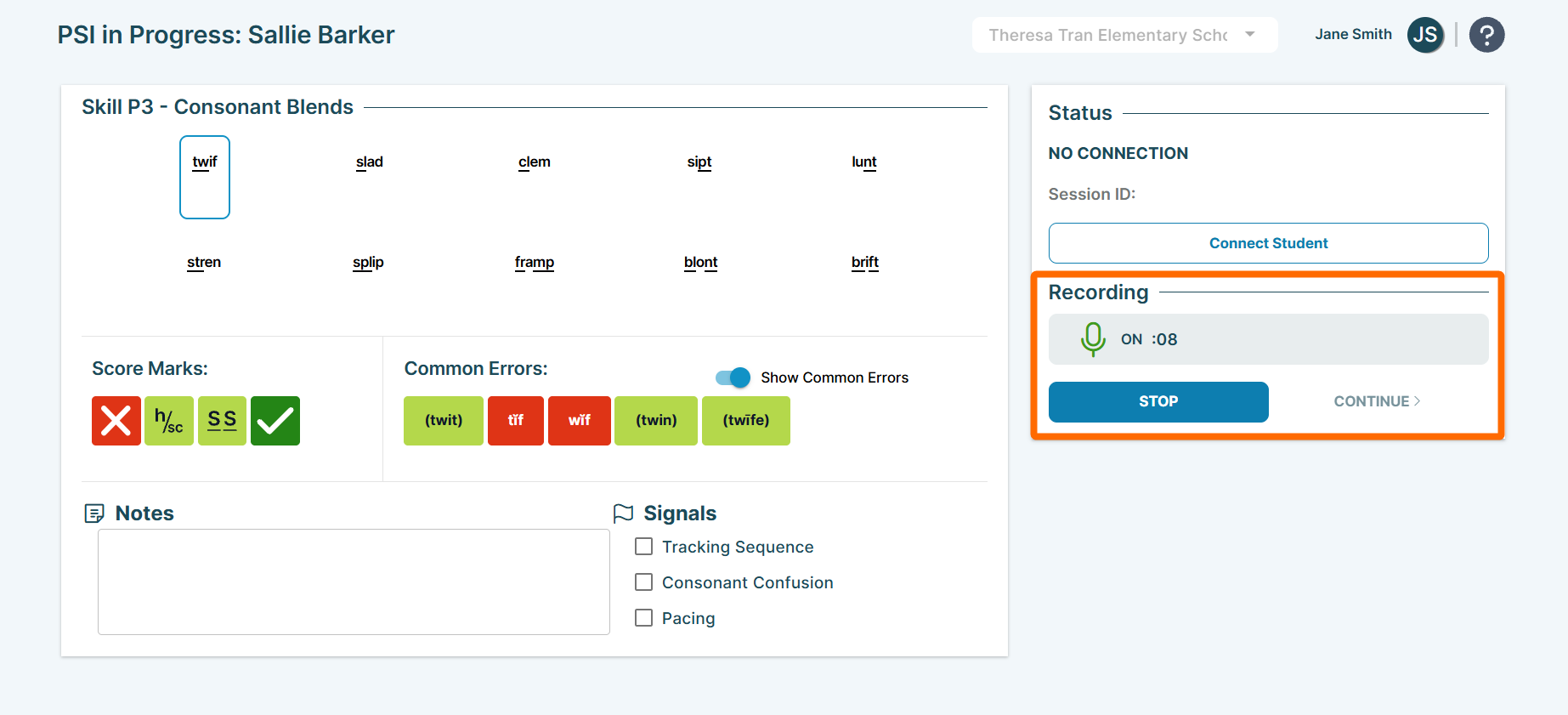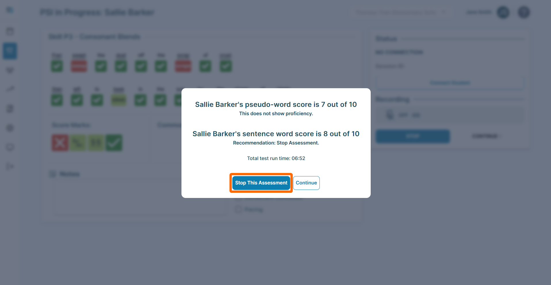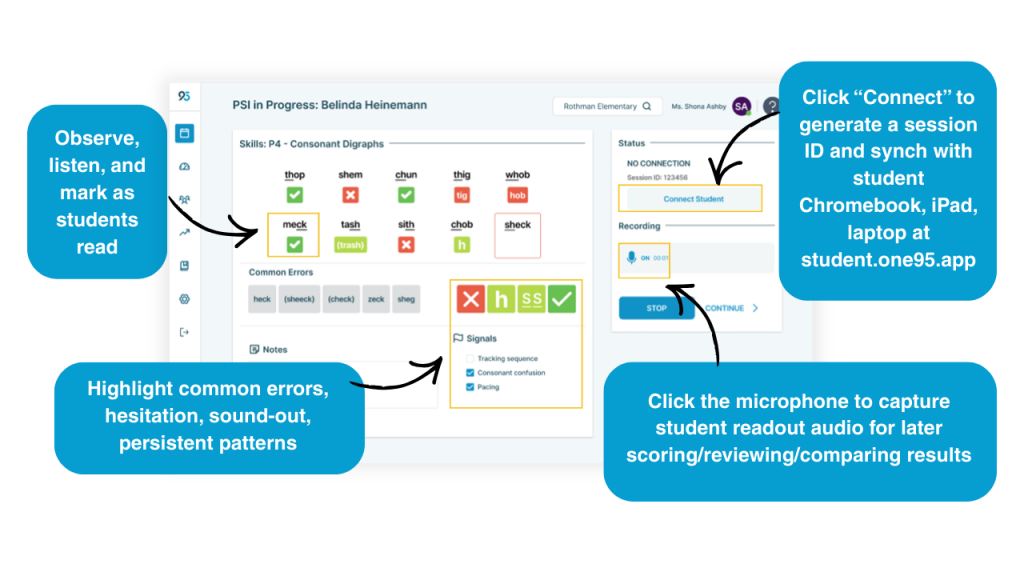 • Record the student's answers as they read using the scoring tools.  (>>For more detailed guidance on scoring tools, check out the Assessment Administration article.)